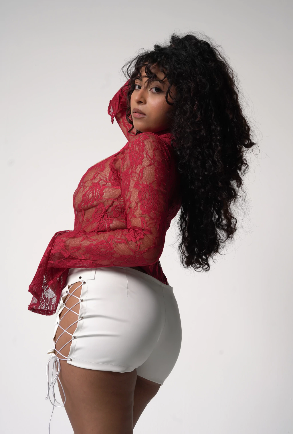 Tecido: Renda com elastano (transparência total, sem forro).